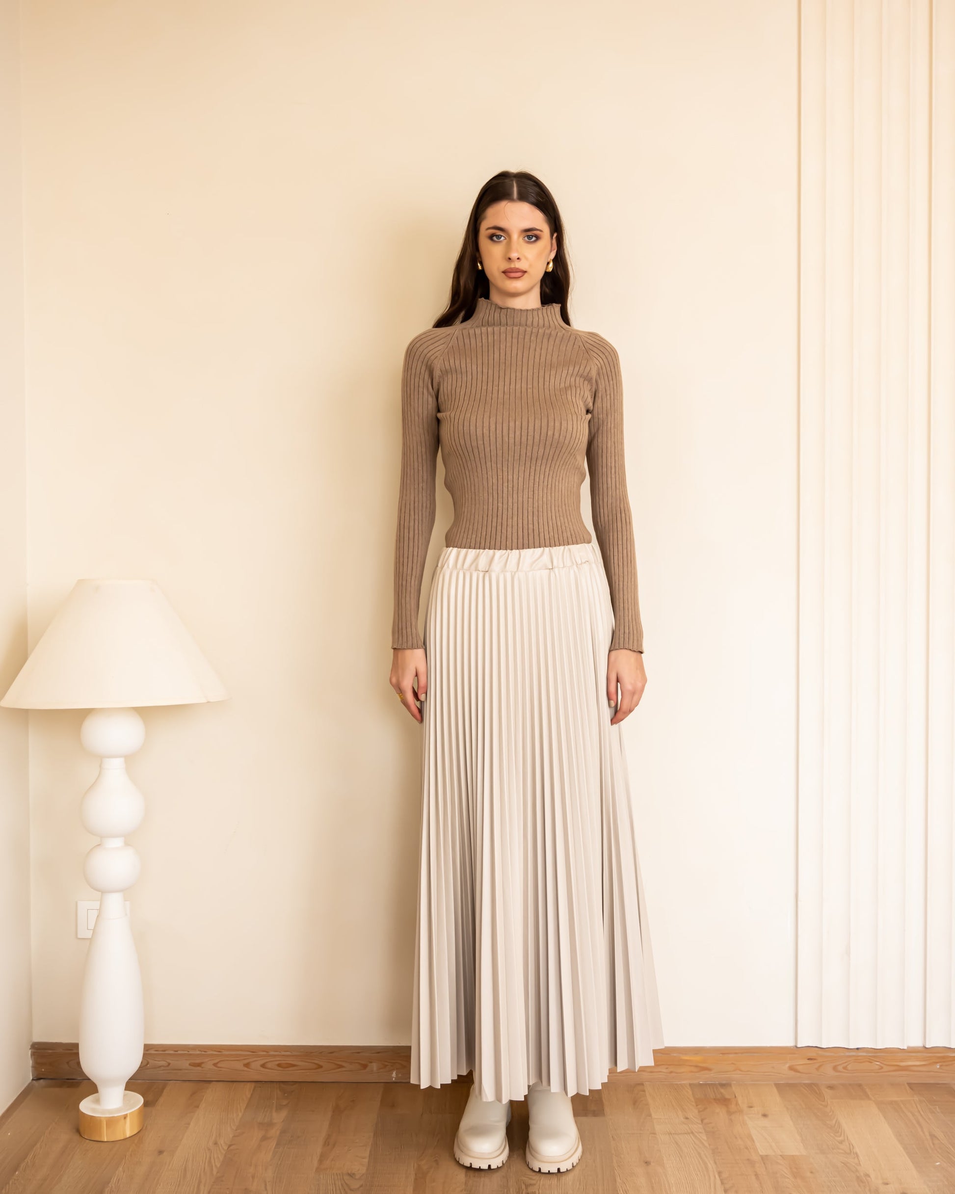 Basic Ribbed Knit Top-BROWN