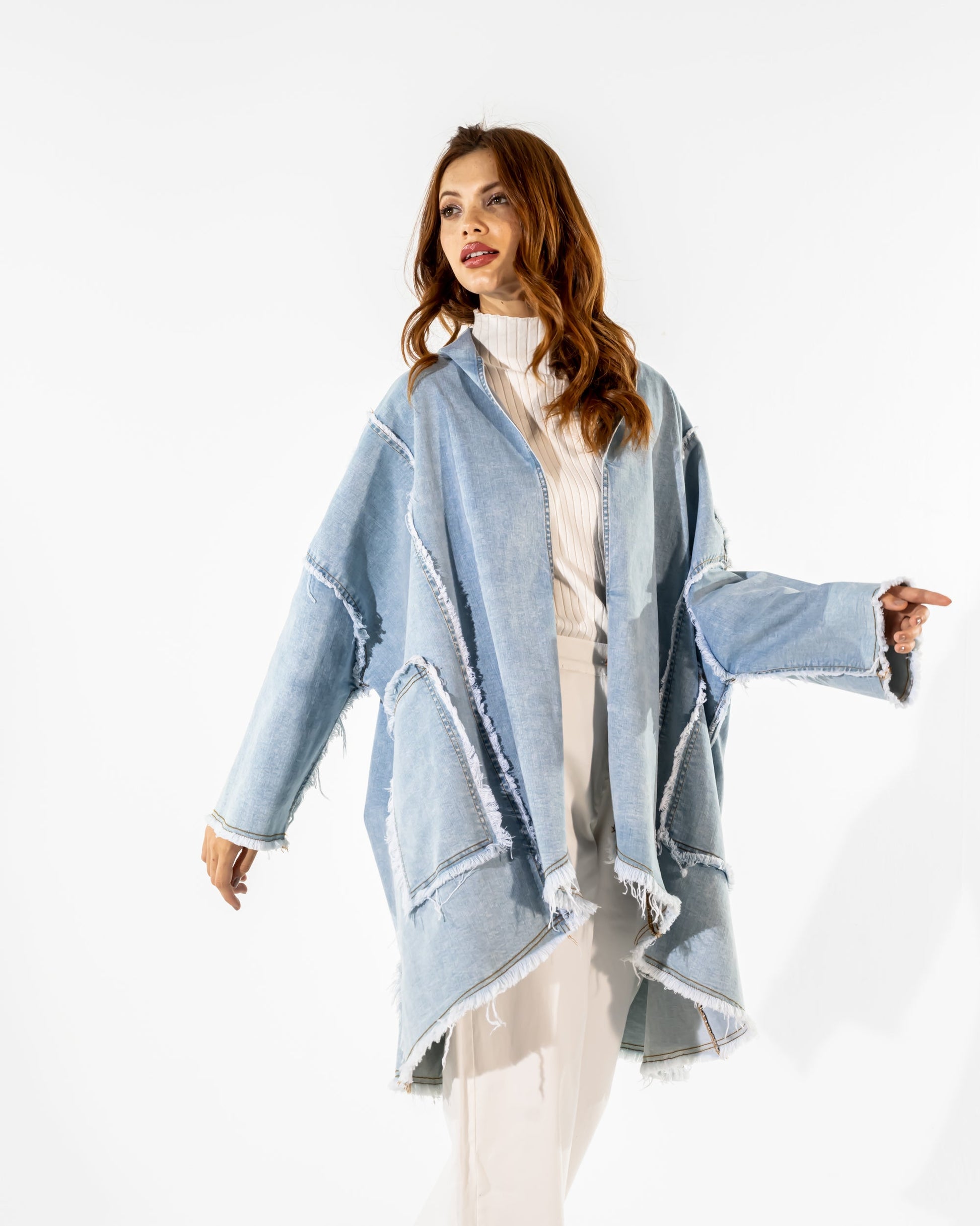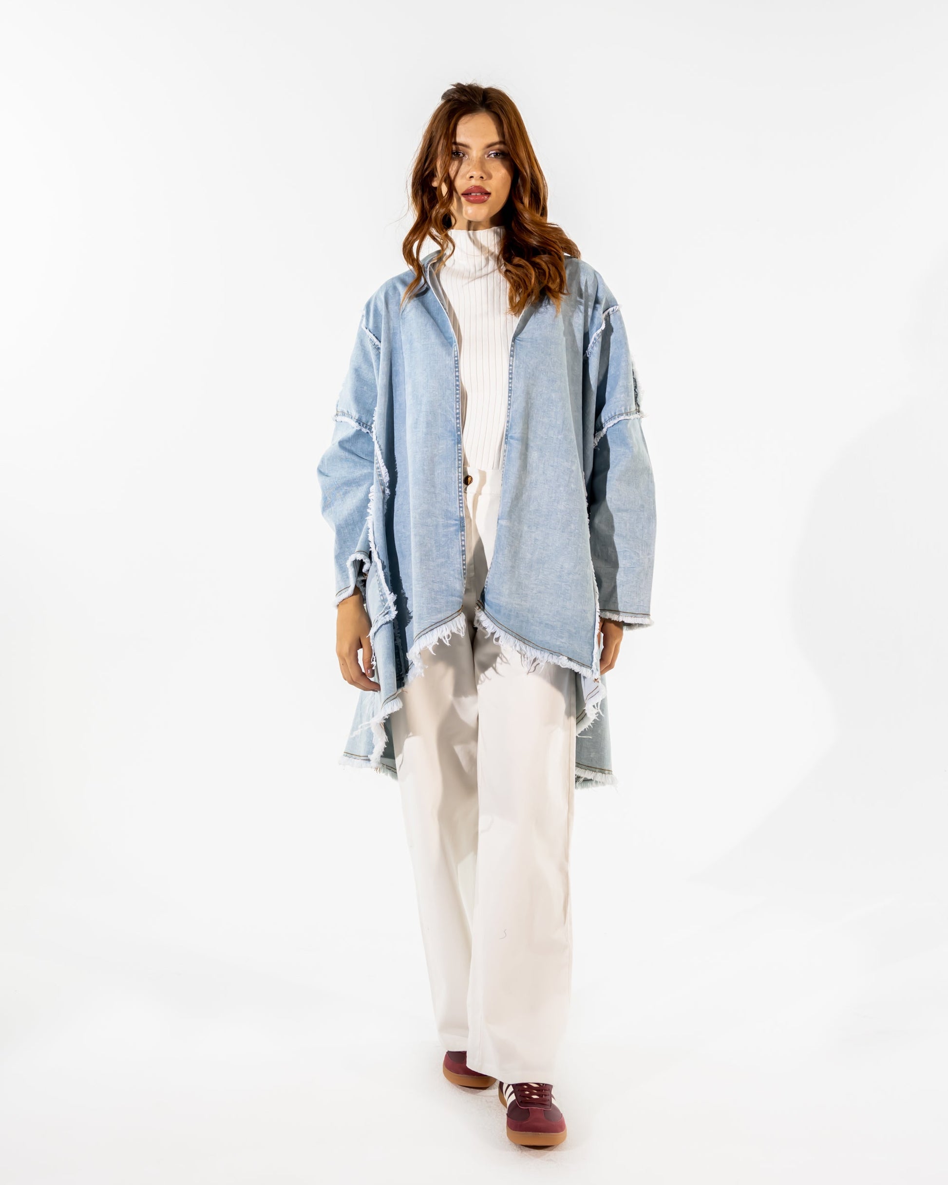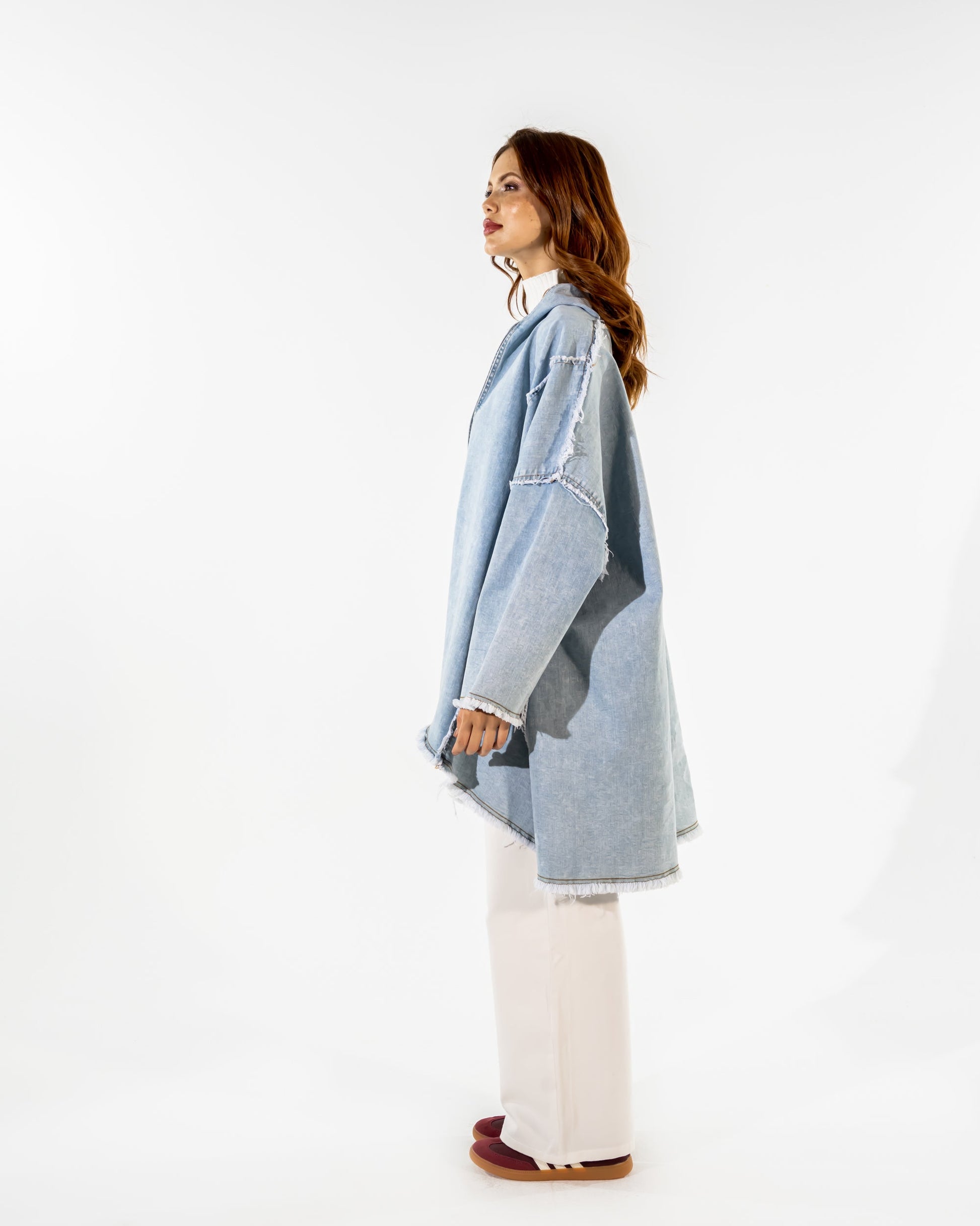 LONG DENIM CARDIGAN-BLUE