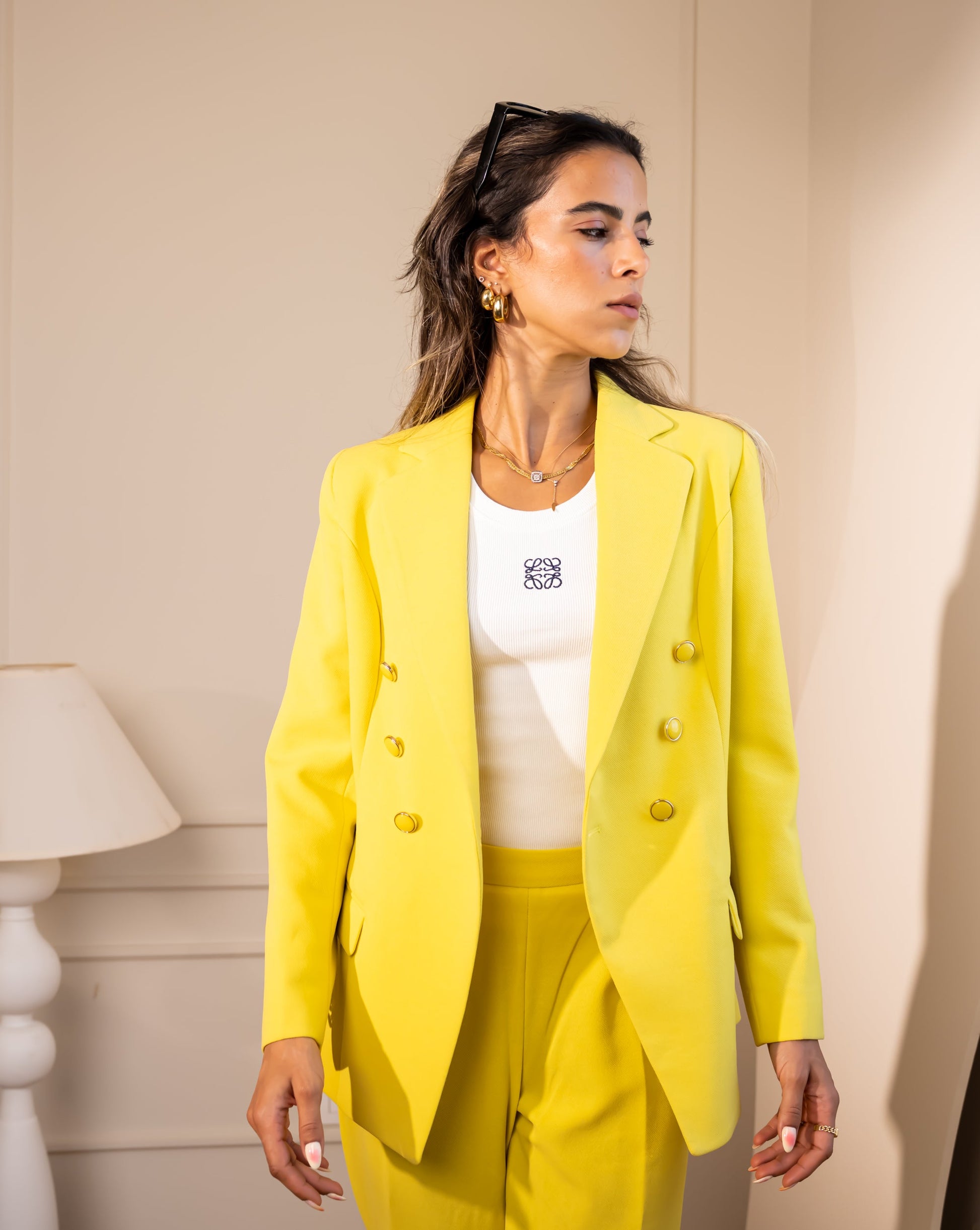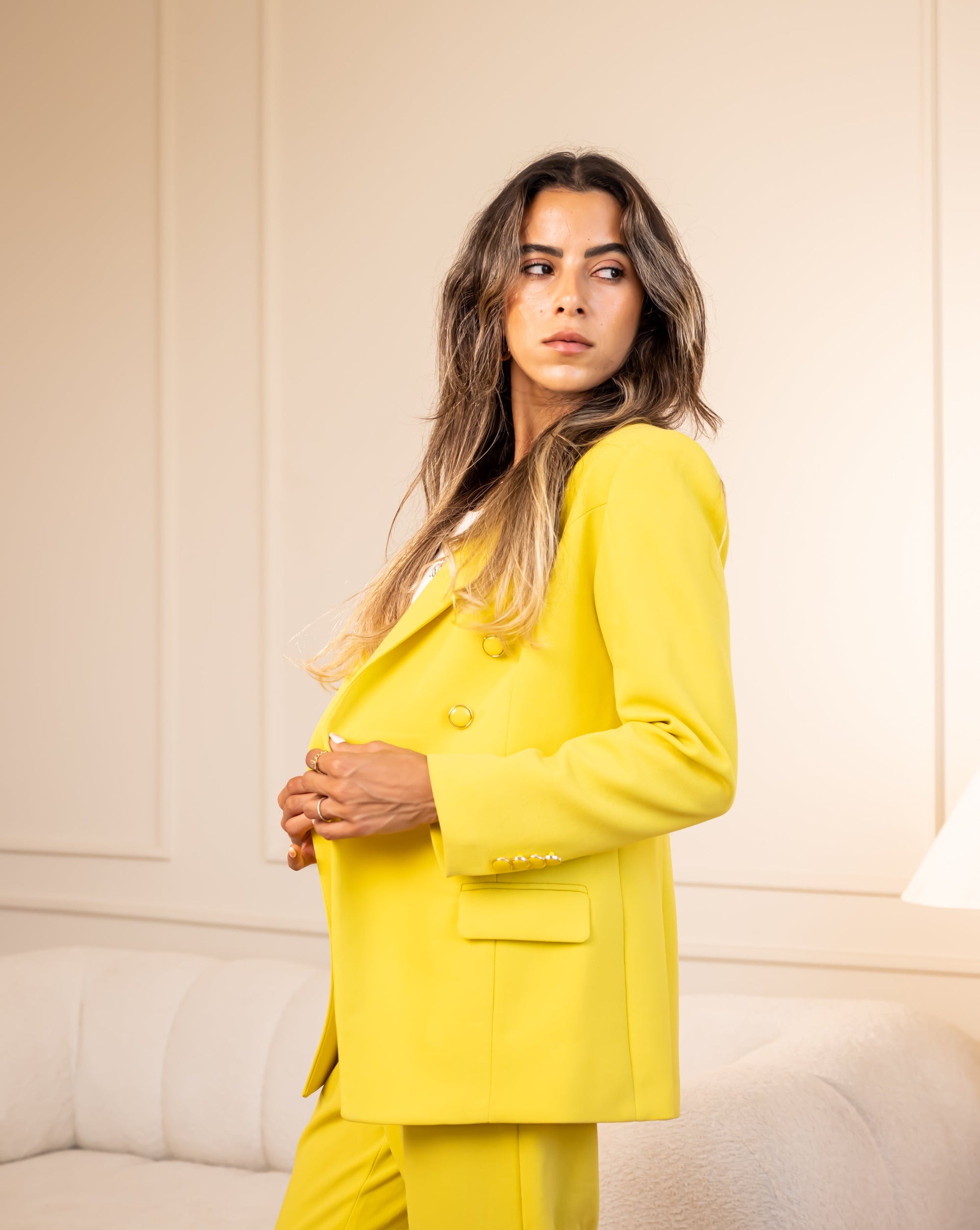 DOUBLE BREASTED BLAZER-YELLOW