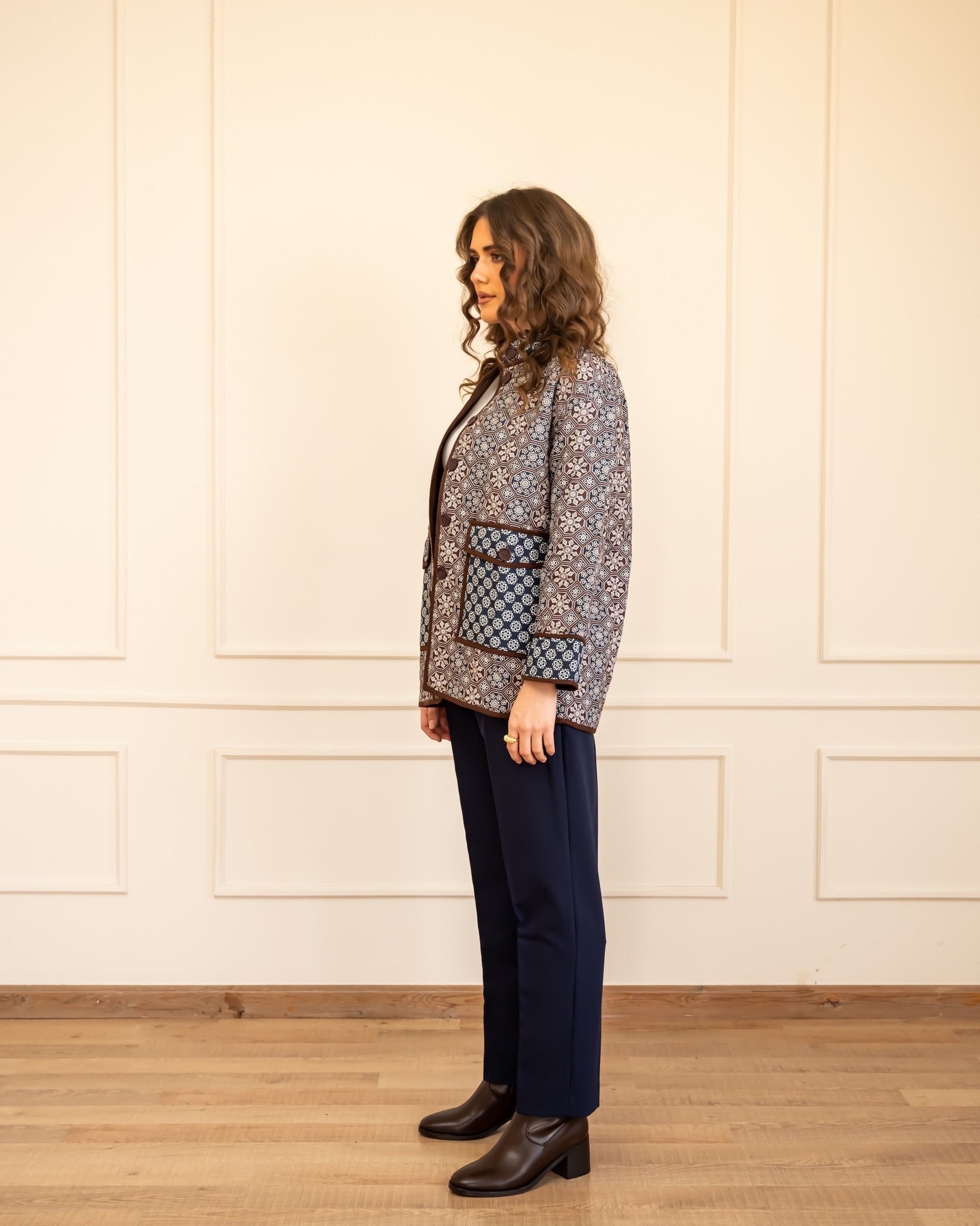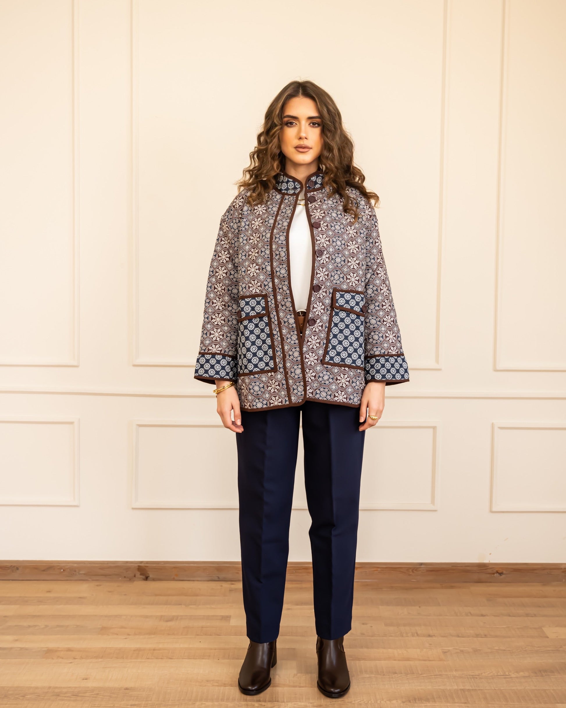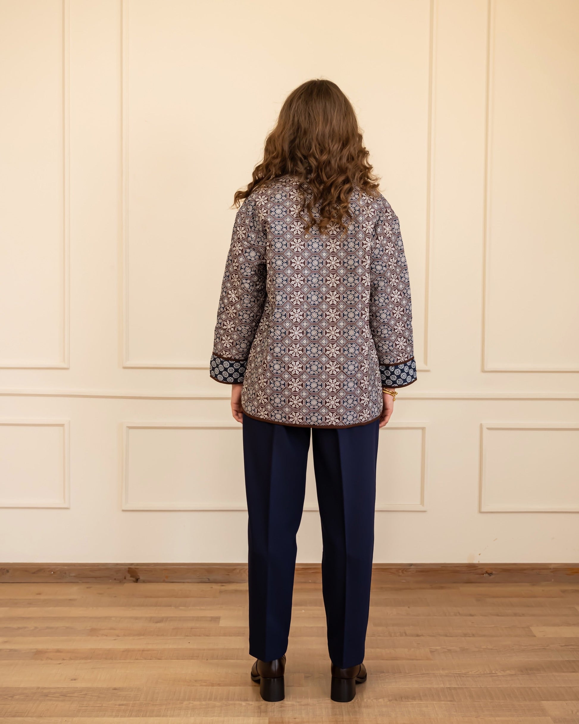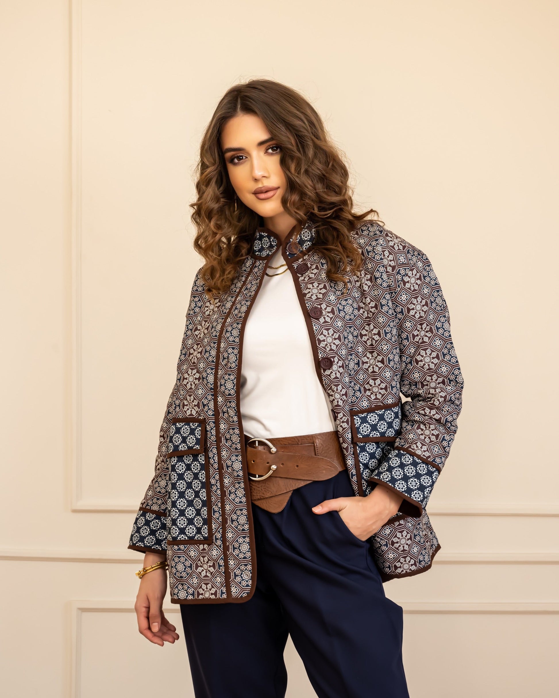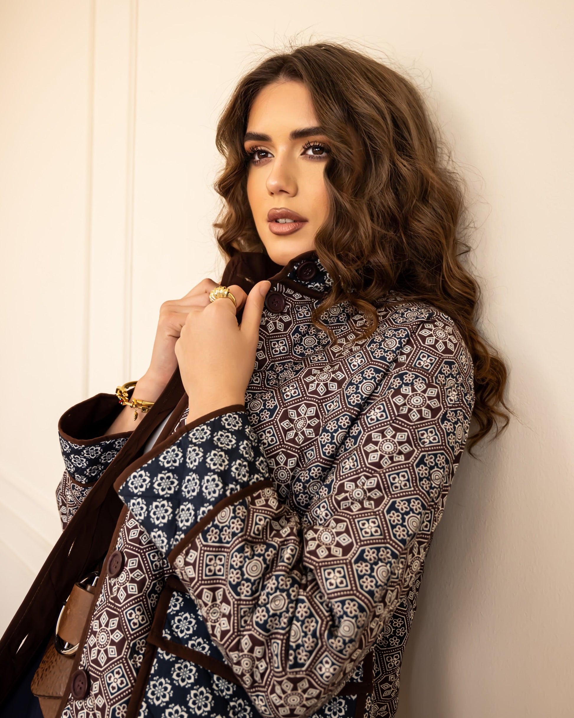 PRINTED PUFFER JACKET -BROWN