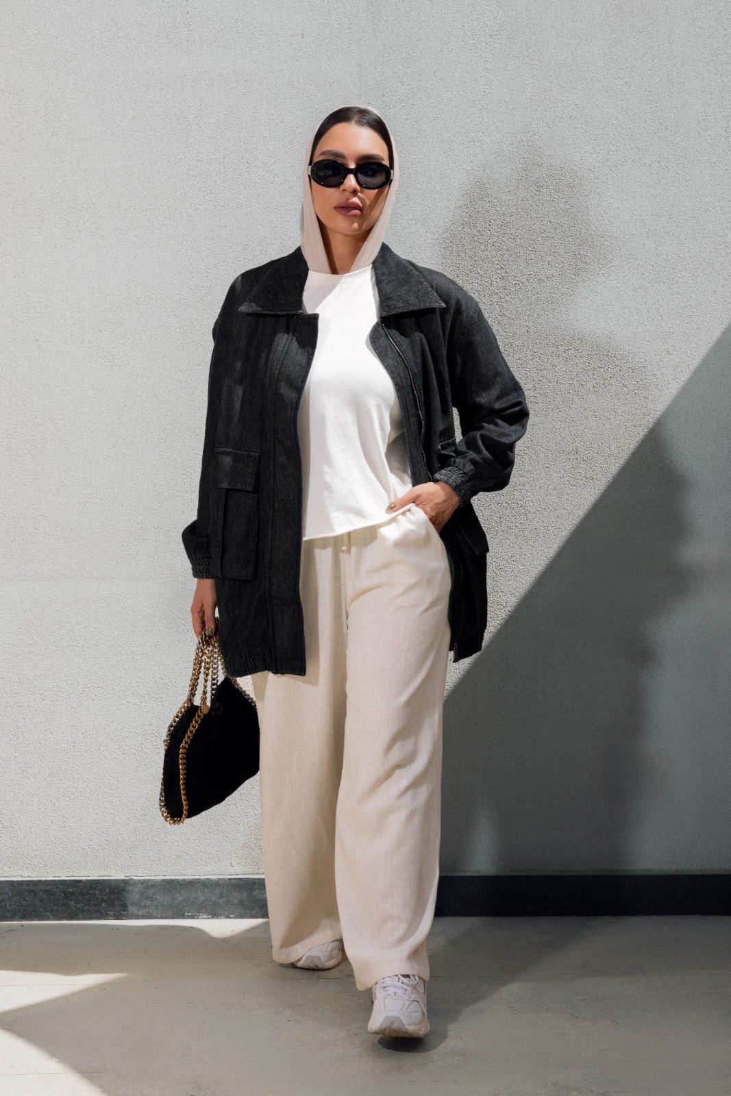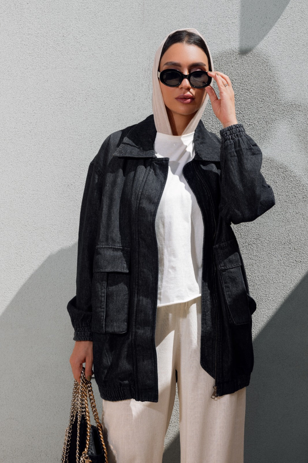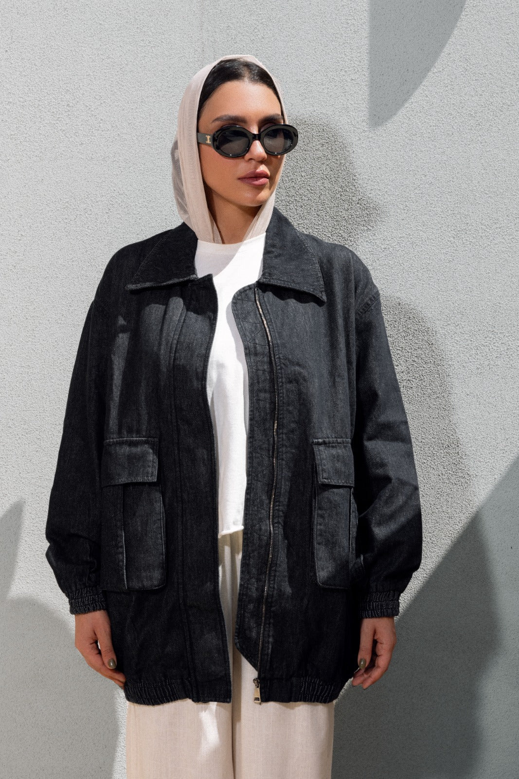 LONG DENIM JACKET-BLACK