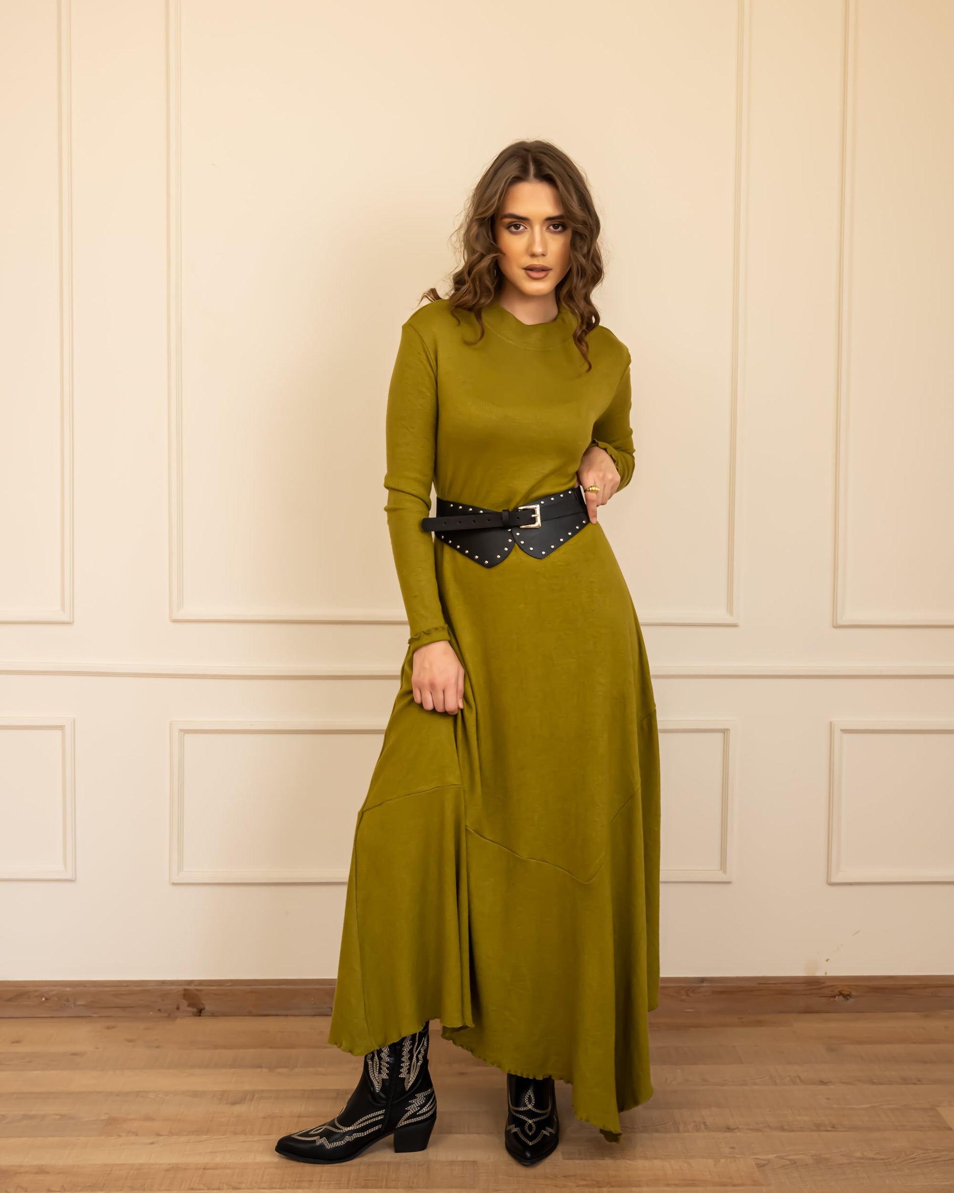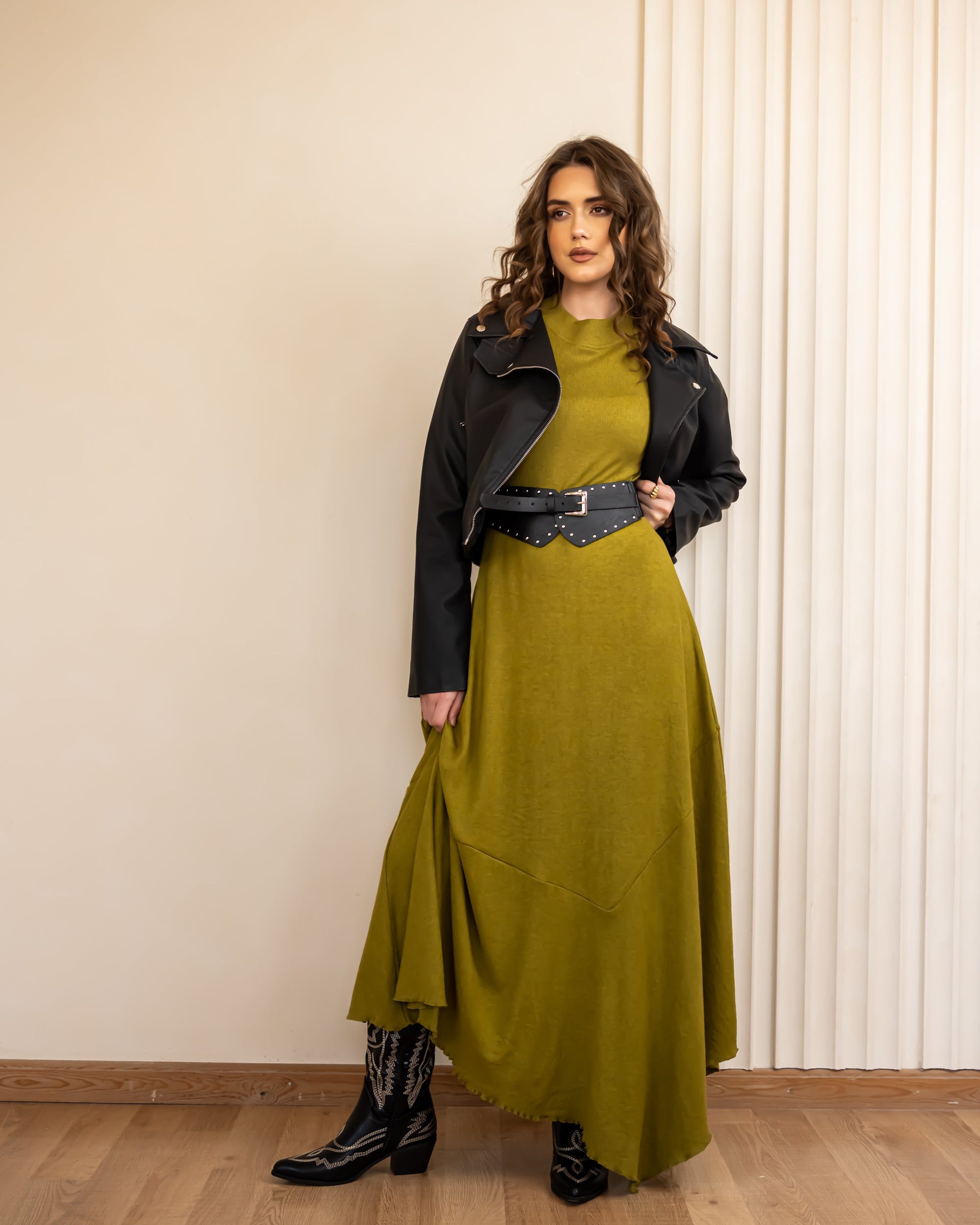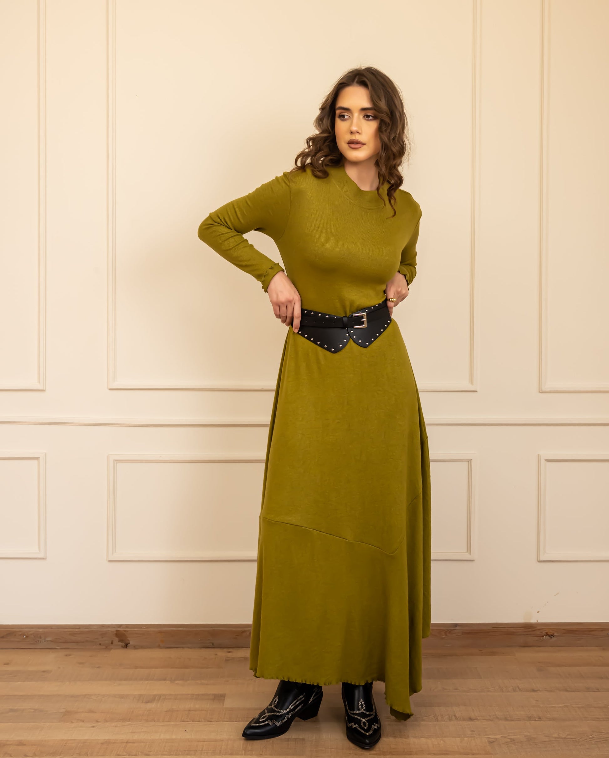 HIGH LOW RIBBED DRESS-LEMON