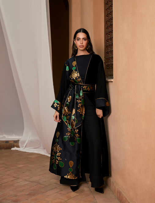PREMIUM JACQUARD KAFTAN LINED CHIFFON -BLACK