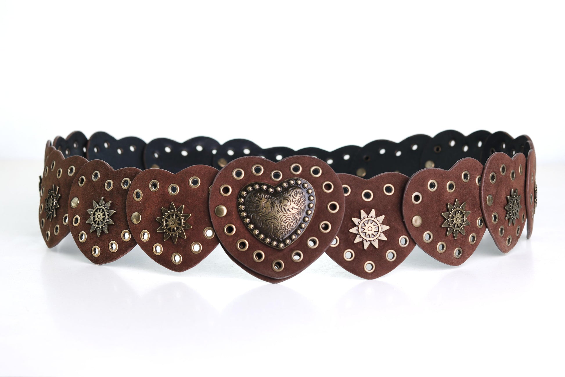 STUDDED METAL HEART BELT-BROWN
