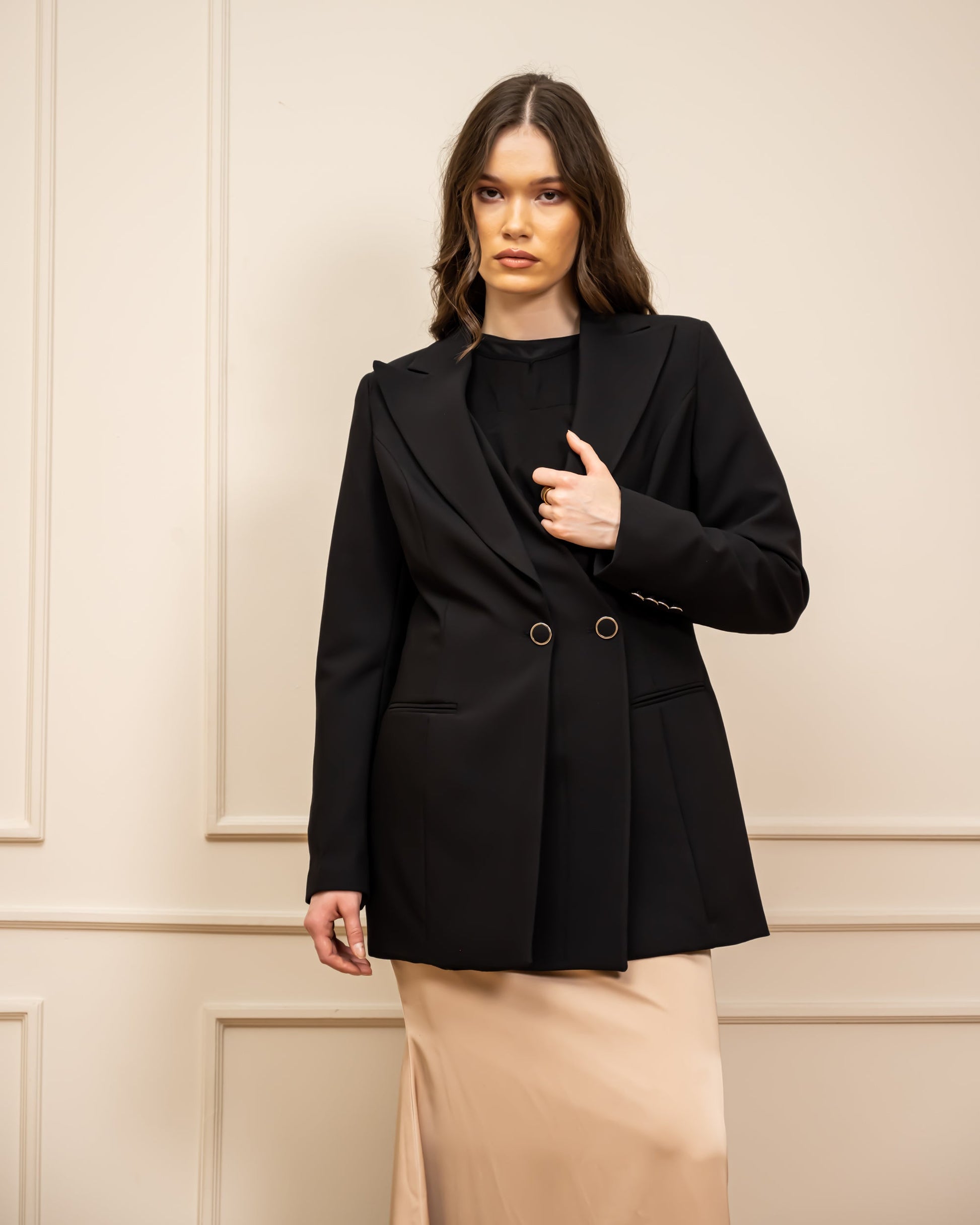 LONG ELEGANT BLAZER -BLACK