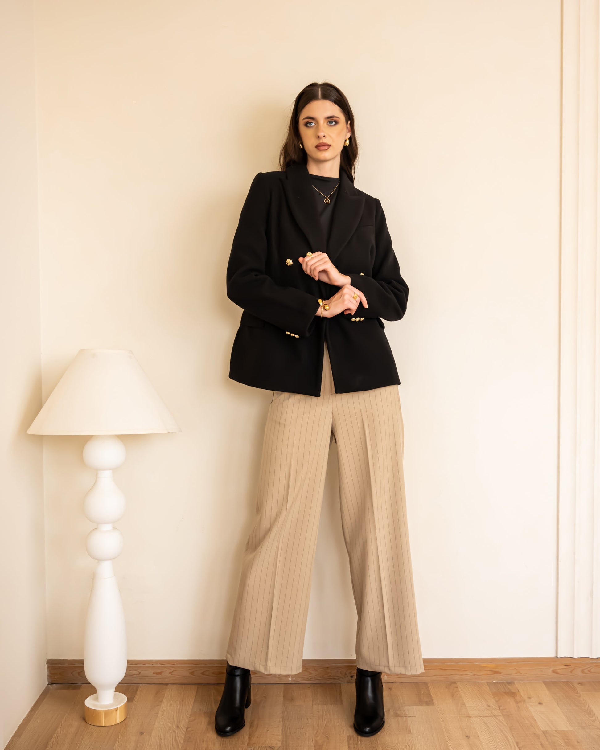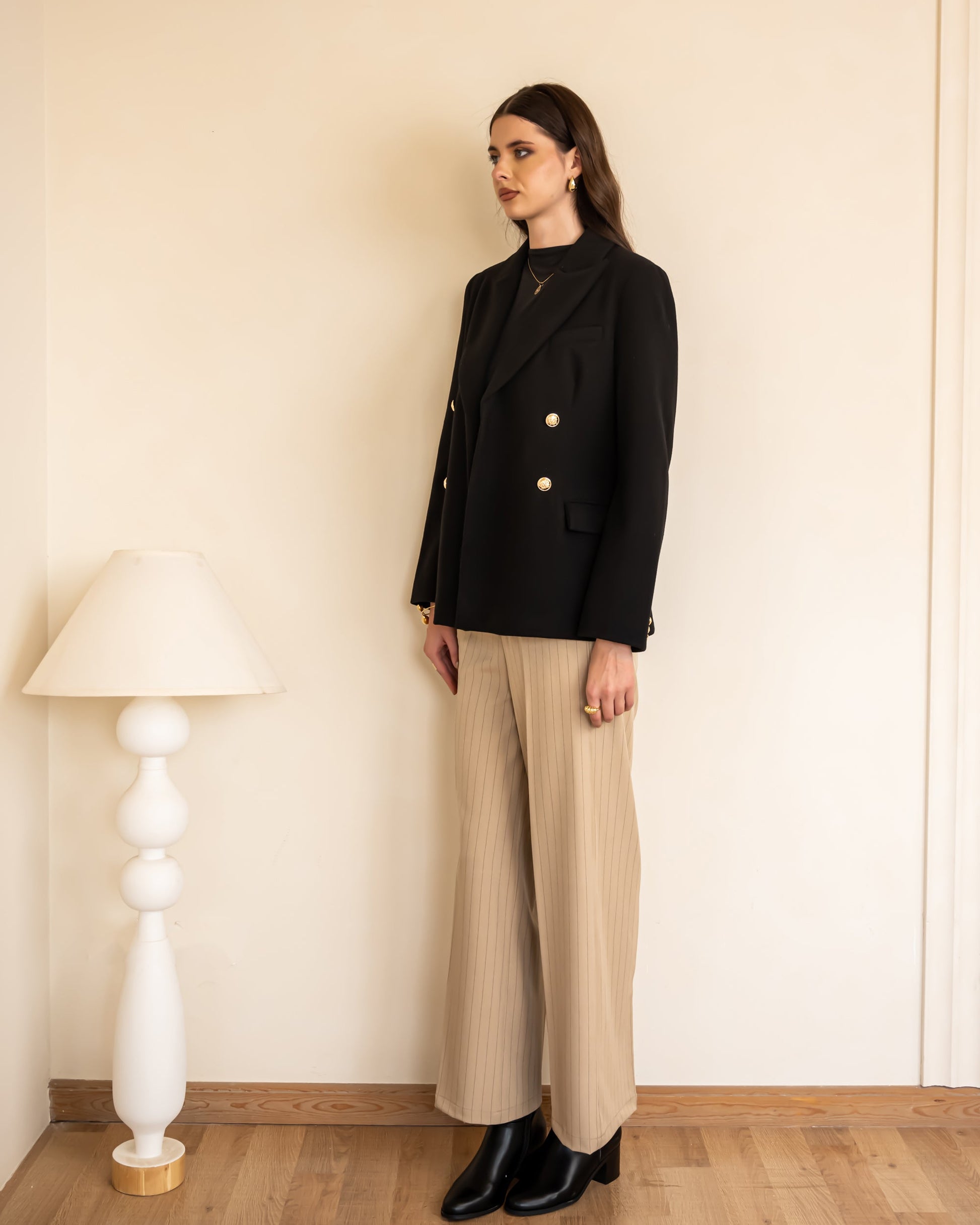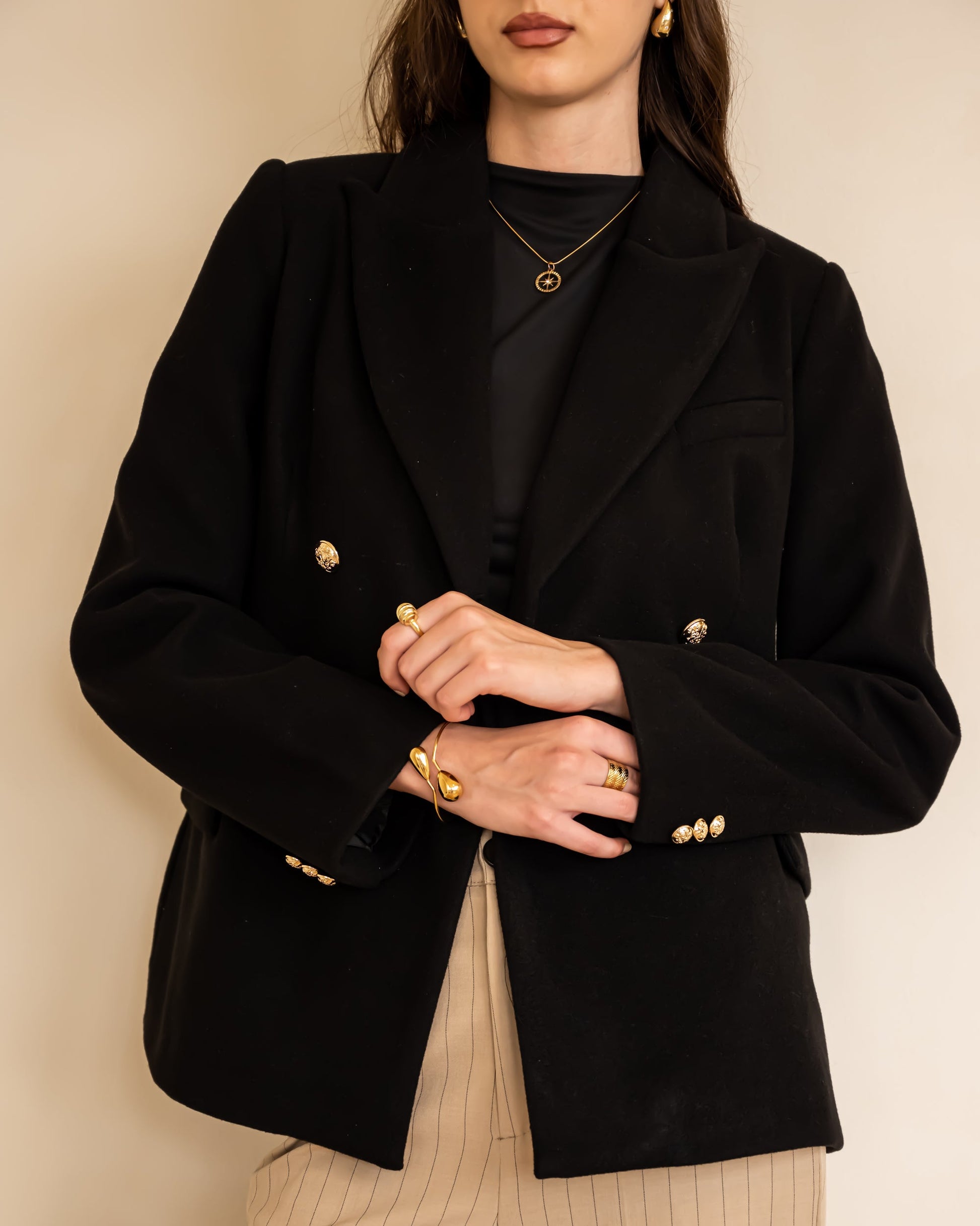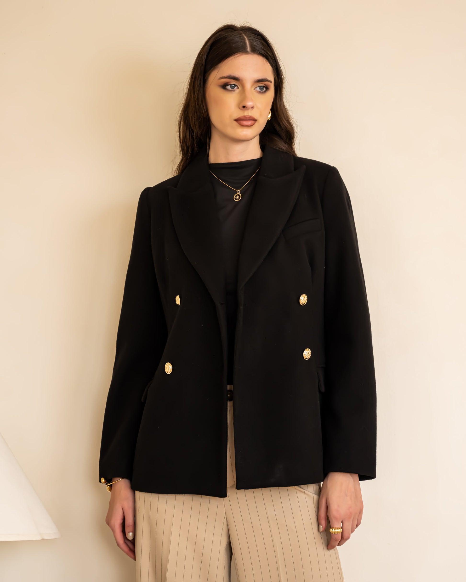 GOLD DOUBLE BREASTED BLAZER -BLACK