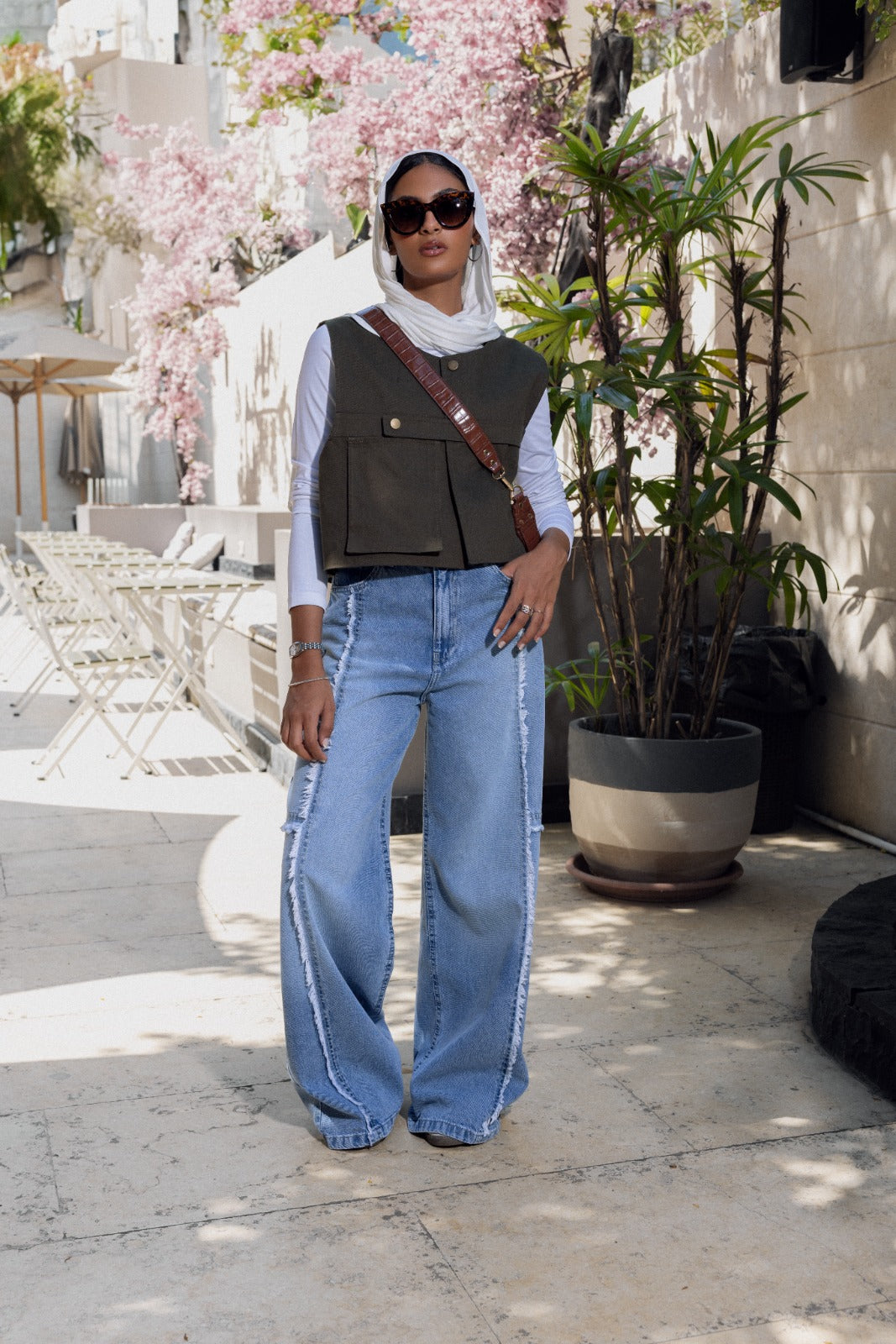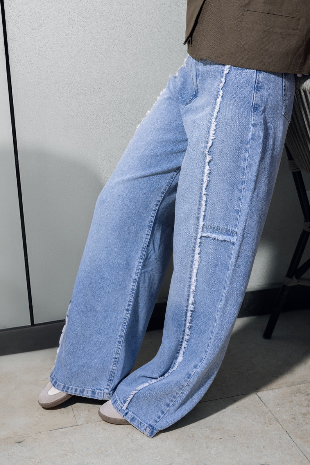 WIDE LEG DISTRESSED TROUSERS -LIGHT BLUE